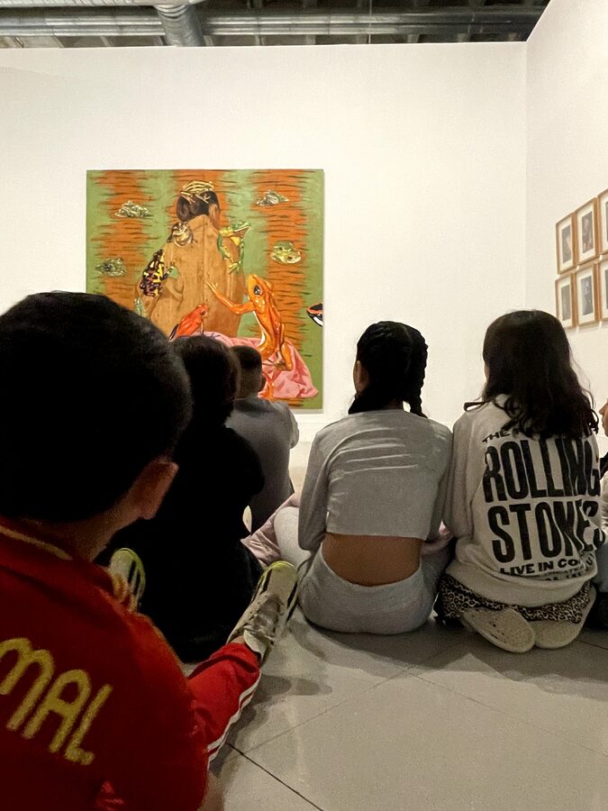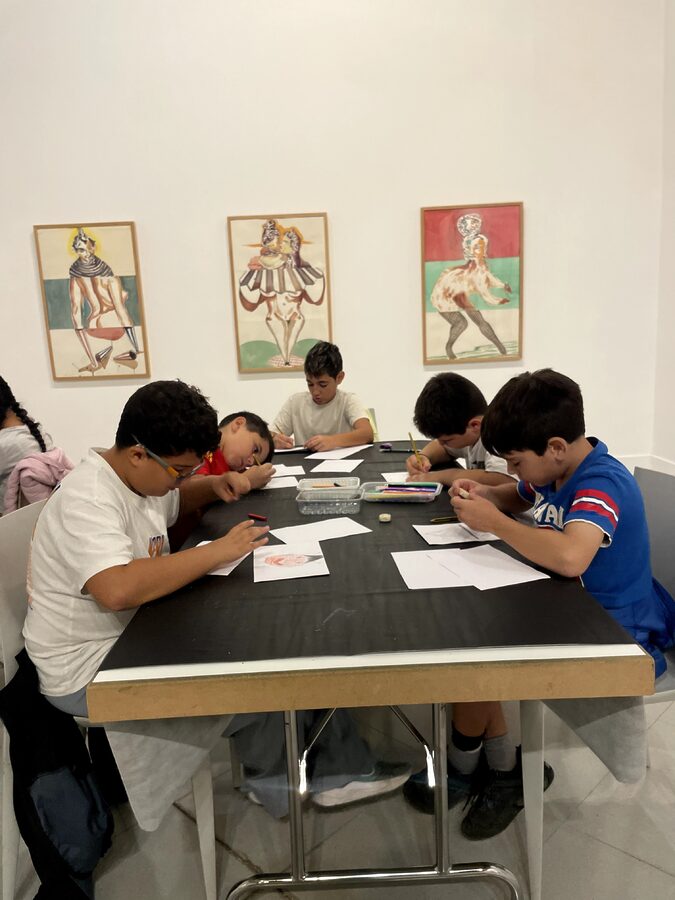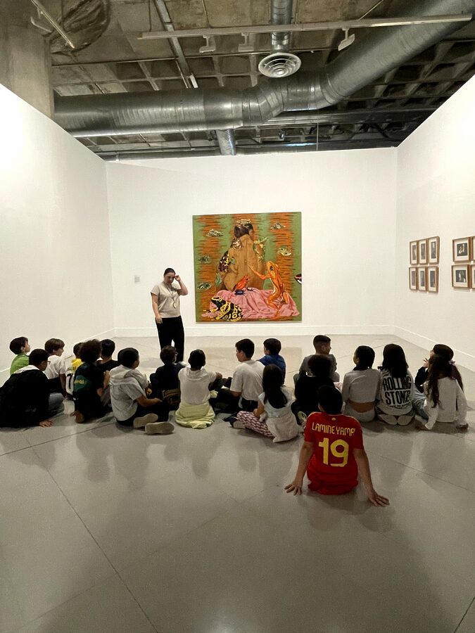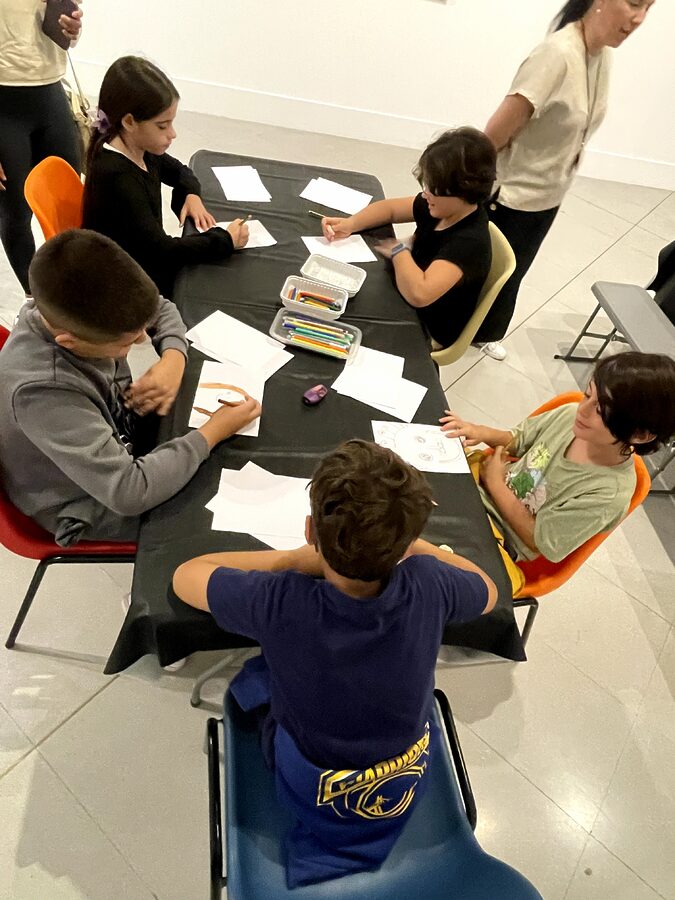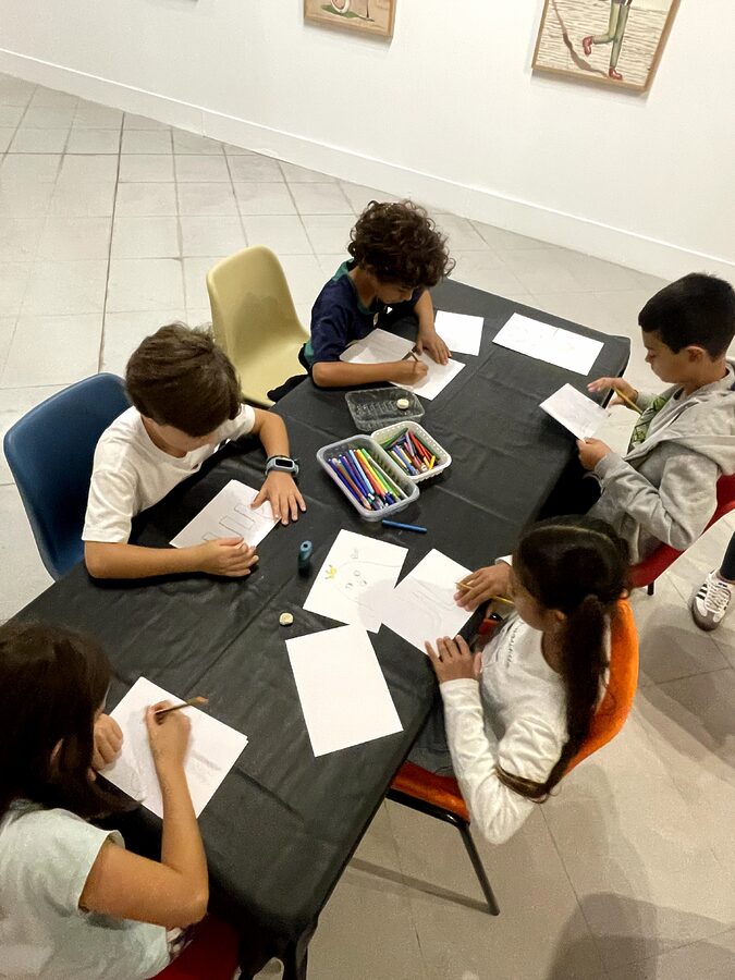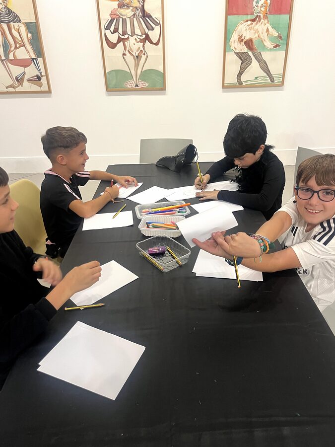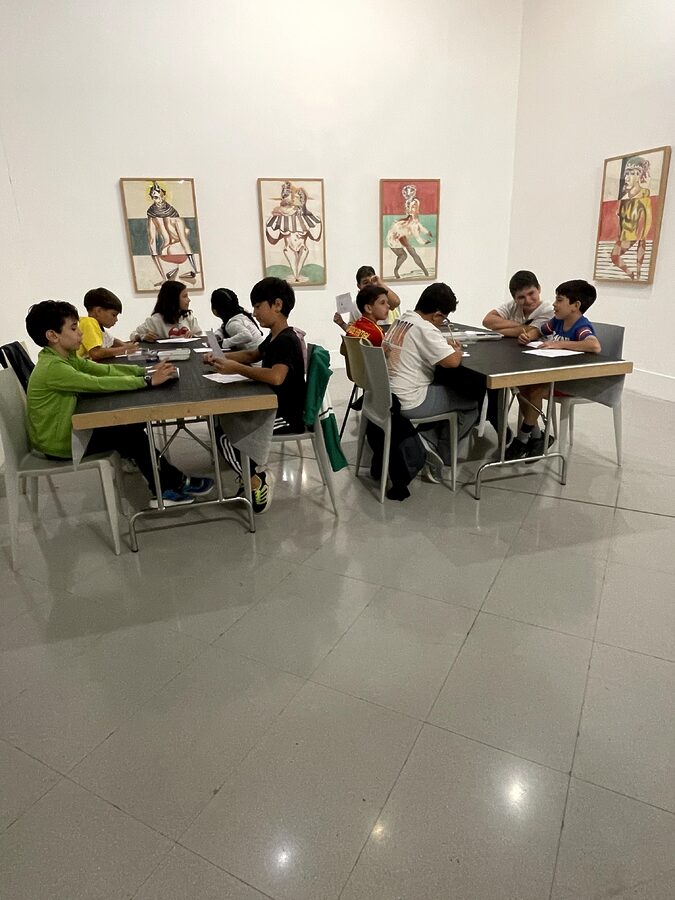 Durante la primera parte de la actividad, los niños y niñas conocieron la historia del museo y se acercaron a la figura del artista Ray Smith, explorando algunas de sus obras más representativas y comprendiendo su estilo tan particular.