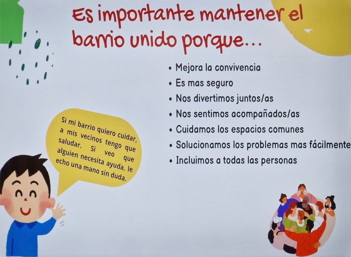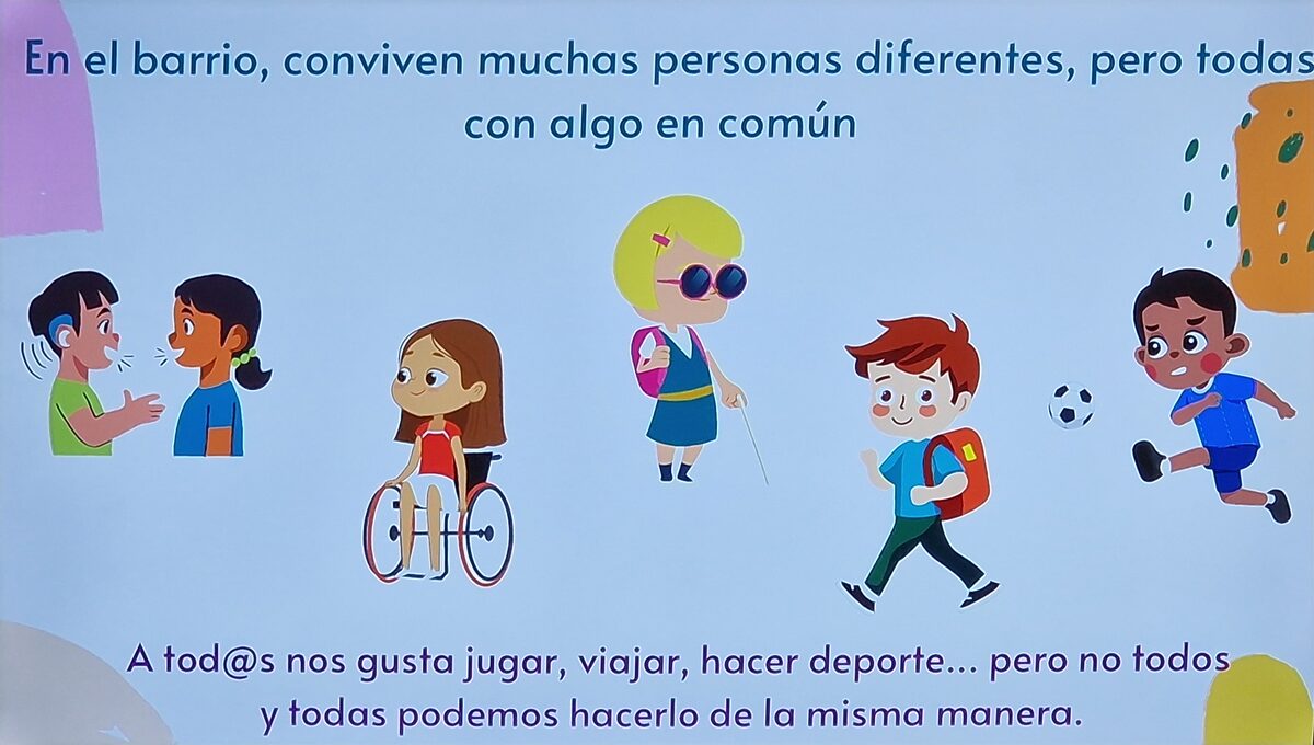 La jornada se organizó en dos bloques. Mientras un grupo recibía una charla teórica, el otro realizaba actividades prácticas, invirtiendo los roles en la segunda hora. En la parte teórica se abordaron temas como la importancia de implicarse en la vida del barrio, el cuidado de los espacios comunes, la ayuda mutua, la inclusión de personas con discapacidad y la necesidad de garantizar la accesibilidad universal. También se profundizó en el concepto de diversidad funcional y en el uso de productos de apoyo para favorecer la autonomía personal.