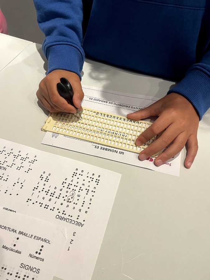 El alumnado aprendió el funcionamiento del sistema Braille y experimentó cómo las personas con discapacidad visual acceden a la lectura y escritura.