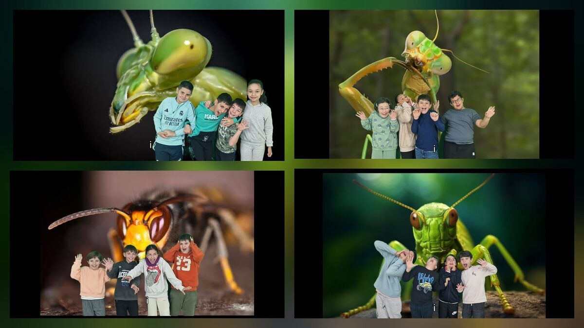 Para finalizar la actividad, los niños y niñas se realizaron una divertida fotografía en croma, poniendo cara de susto al imaginar un insecto gigante detrás de ellos. Un recuerdo lleno de humor para cerrar una experiencia educativa completa, motivadora y muy enriquecedora.